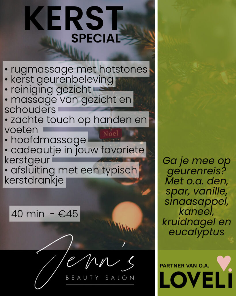 | Een behandeling passend bij dit seizoen maar dan net even wat uitgebreider. – abrikozenpitolie reiniging (met de geur van amandel) – peeling – foam cleanser – uitgebreide gezicht en schouder massage massage met hotstones en ceder, boswellia en rode mandarijn olie – voetmassage met hotstones – vitamine C masker – hoofdmassage – ceder hydrolaat spray – Loveli vitamin C serum + dagverzorging |